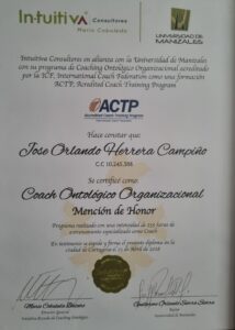 Coach Ontológico mención de Honor Universidad de Manizales-Escuela Intuitiva